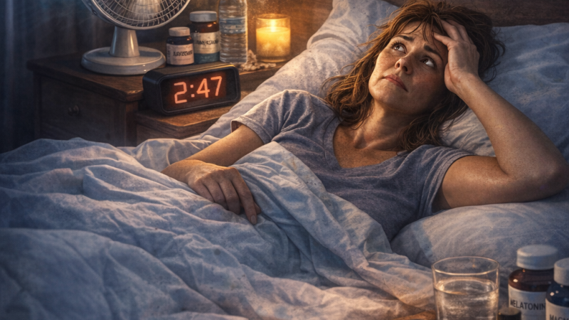 Sleep becomes a strategic operation. You have “night sweats pajamas,” “cool side of the pillow calculations,” and a fan that sounds like a small aircraft preparing for takeoff. There’s magnesium on the bedside table, melatonin in the drawer, lavender scents, white noise, pink noise, brown noise, and somehow you’re still wide awake at 3:12 a.m. googling, “Can I survive on spite and coffee alone?”
