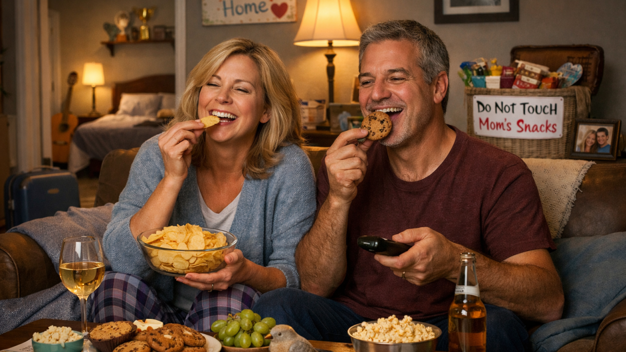 At night, you and your partner (or just you and the house, depending on your stage of life) sit in silence staring at the TV, realizing you can now watch whatever you want without someone complaining. No more cartoons at full volume or teenage dramas hijacking the remote. You rediscover documentaries, grown-up shows, and the unsettling realization that you are now the target audience for news programs.
