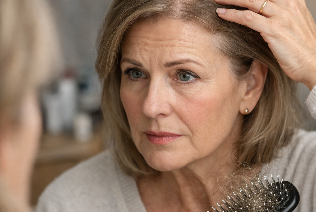 Hair loss as women age is one of the most distressing and least openly discussed physical changes of midlife. While society often frames hair thinning as a male issue, up to half of women experience noticeable hair loss by their 50s and 60s. For many, it feels deeply personal. Hair is tied to identity, femininity, and self-expression, so watching it thin, shed, or lose volume can affect confidence and body image in powerful ways.